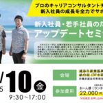 2025年7月21日 / 最終更新日 : 2026年3月7日 當銘康起 新着情報 新入社員・若手社員のためのアップデートセミナー開催いたします! ヒューマンプロデュース「プロキャリアコンサルタントチーム」が新入社員の成長を全力でサポート‼ 入社後に直面する「5つの壁」を自ら乗り越える力を養い、自分らしく前に進むきっかけを届けます。 私たちは異なる業界・キャリアを歩 […]