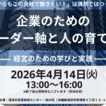 2026年3月7日 / 最終更新日 : 2026年3月7日 當銘康起 セミナー 【リーダー軸と人の育て方】経営者・管理職のための 実践セミナーを開催します! 【なぜ、あの会社は社員が辞めないのか?】 実は 給与だけが理由ではありません。 会社には 「人が残る理由」があります。 そしてもう一つ。 組織を変えるのは リーダーの軸です。 今回、経営者・管理職のための 実践セミナーを […]