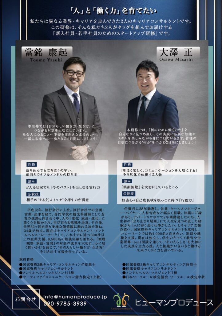 當銘康起 × 大澤正が「人」と「働く力」を育てる実践型研修を開催します。